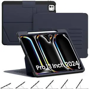 Timecity Case for iPad Pro 13 Inch 2024 (M4) 7th Genaration Case, Strong Magnetic with 6 Angle Stand, Auto Sleep/Wake, Upgrade PU Leather Cover for iPad Pro13 2024, Navy Blue
