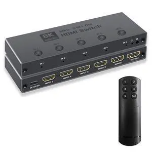 Enbuer 8K HDMI 2.1 Switch, HDMI 2.1 Switcher 5 in 1 Out Supports CEC 8K@60Hz, 4K@240Hz, 1080P@480Hz, HDCP 2.3 HDR 3D Dolby Atmos VRR Compatible with PS5 Xbox Blu-Ray Player with IR Remote Controller