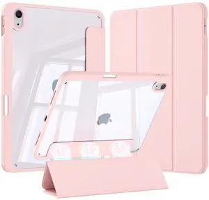 SQQSOOZ Case for iPad Air 11 Inch M4/M3/M2 2026/2025/2024, iPad Air 5th/4th Gen 10.9 Inch Case 2022/2020 with Pencil Holder, Magnetic Detachable of Clear Back Cover, Slim & Tri-Fold Cover, Pink
