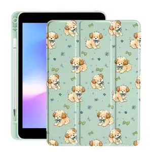 LuGeKe Green Bow Dog Case for 13 Inch iPad Air 6 Unique Case,Pencil Holder & Clear Acrylic Back & Trifold Stand Cover for Women