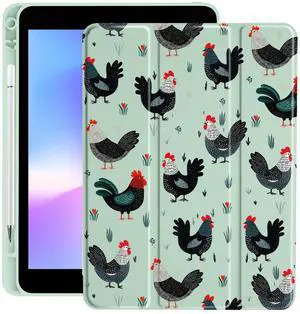 LuGeKe Rooster Case for iPad 2019/2020/2021(iPad 7th/8th/9th) Unique Case,Pencil Holder & Clear Acrylic Back & Trifold Stand Cover for Women
