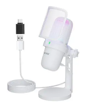 Ko-Star USB Microphone for PC,White Mini Mic for PS4/ PS5/ Mac,Computer Gaming Condenser with Quick Mute,RGB Streaming,Filter,Shock Mount,Recording Microphones for YouTube Titok