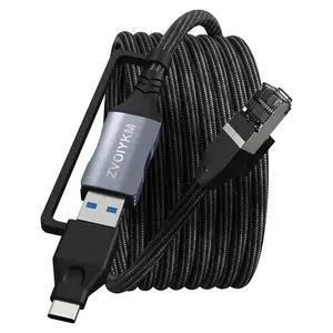 ZVOIYKM USB to Ethernet Cable 10FT/3M with USB C Port, Braided USB 3.0 A/C to RJ45 Gigabit LAN Network Cord, Gold Plated Connector for Laptop, PC, MacBook, iPad Pro, Game Console, Tablet