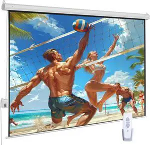 120" Motorized Projector Screen, Electric 16:9 Projector Screen with Remote Control, Indoor/Outdoor HD Movie Screen, Wall/Ceiling Mounted, Perfect for Home Office Theater TV, White