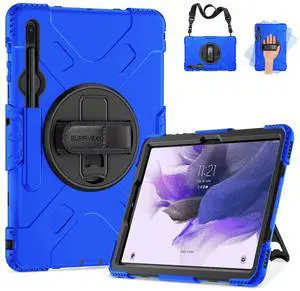 SUPFIVES Case for Samsung Galaxy Tab S7 FE 12.4 Inch 2021 : [Upgraded Military Grade] Full-Body Rugged Protective Soft Silicone Cover - Kick Stand- Handle/Shoulder Strap- S Pen Holder- Blue