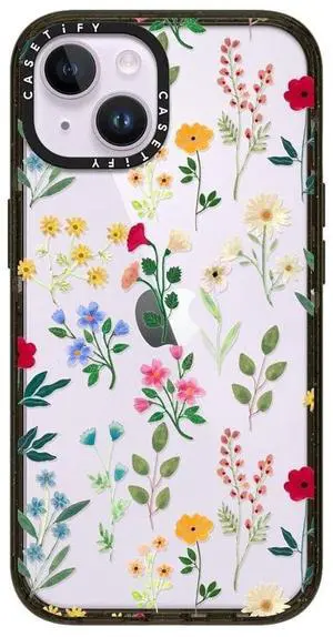 CASETiFY Impact iPhone 14 Case [4X Military Grade Drop Tested / 8.2ft Drop Protection] - Spring Botanicals 2 - Glossy Black