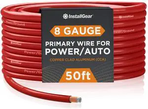 InstallGear 8 Gauge Wire (50ft) Copper Clad Aluminum CAA - Primary Automotive Wire, Car Amplifier Power and Ground Cable, Battery Cable, Car Audio Speaker Stereo, RV Trailer Wiring Welding Cable 8ga