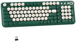 Links9+ Wireless Bluetooth Keyboard, Retro Round Typewriter Keyboard, Dual Mode Bluetooth & 2.4GHz Receiver, Compatible with Windows, macOS, iPad, Android, Laptops, and Tablets (Green)