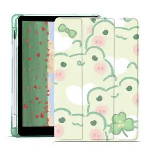 JOYLAND Cute Frog Case for iPad mini 7(A17 Pro)/iPad mini 6 8.3 Inch, Leather Foldable Stand Green TPU Back Cover with Pencil Holder Shockproof Protective Case Auto Wake/Sleep