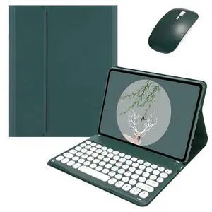 Kaidisen Keyboard Case for Galaxy Tab A7 Lite 8.7 inch with Bluetooth Mouse, Detachable Colorful Round Key Keyboard Cover, Dark Green