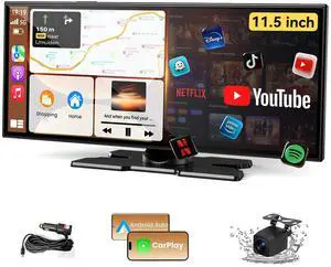Largest 11.5 inch Wireless CarPlay Screen for Car,Built-in N-etflix/YouTube/TikTok and other apps,A-pple CarPlay & Android Auto screen with1080P Backup Camera/Navigation/Voice Control,for All Vehicles