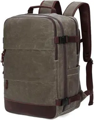 Kasqo Laptop Backpack 15.6 Inch Canvas Waterproof Anti Theft Business Travel College Computer Bag 18.8L Carry on Bag with USB Charging Port for Women Men, Khaki
