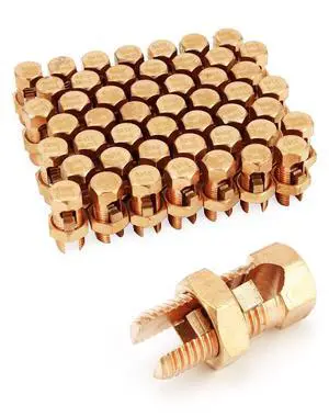 QWORK Grounding Split Bolt, 50 Pieces 4 Gauge 8 Gauge High Strength Split Bolt Connectors, Ground Wire Clamp, Solid Copper, for Antenna, Satellite Dish, Cable TV