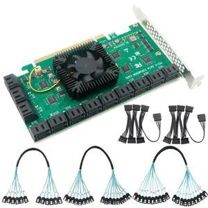 PCIEx16 to 24-Port SATA 3.0 Expansion Card with 20 inches SATA Bundle Cables for Desktop SSD/HDD, Plug & Play, Compatible with Windows/Linux/ESXi