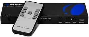 OREI 8K eARC HDMI 2.1 Switch 4x1, Switcher with Audio Extractor UltraHD Supports Upto 4K @ 120Hz PS5, Xbox, Gaming, Remote Contorl IR EDID HDCP 2.3 - Optical Out, L/R Headphones (BK-401ARC)
