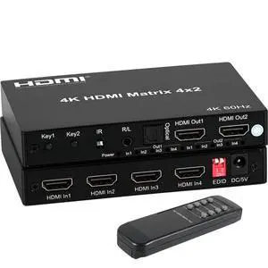 4K 4x2 HDMI Matrix Switch with 3.5mm Stereo Audio Extractor and Audio Optic Output, 4 in 2 Out Video Switcher&Splitter, Support HDMI 2.0 4K@60Hz