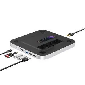 Adjustable Laptop Stand for Desk with Docking Station 9-in-1, Aluminum Laptop Riser with USB Hub, 360° Swivel, Dual Display 4K60Hz HDMI, 3 USB3.0, 100W PD Charging, for MacBook Pro Air/Dell/HP 7-15.6"
