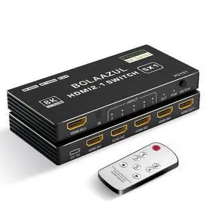 BolAAzuL 8K HDMI 2.1 Switch 120Hz 4K 5 in 1 Out, 8K@60Hz HDMI 2.1 Splitter Switcher Selector Box 5-Port with Remote 4K 120Hz 2K 144Hz, HDMI 5x1 HDR, 48Gbps, CEC, Dolby Vision, for Xbox Series X PS5