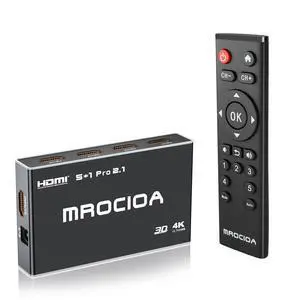 8K 60Hz HDMI ARC Switch,5 Port 4k 2.1 HDMI Splitter, 4K 120hz HDMI Selector Switch Box with IR Remote Support CEC, VRR, HDR10, Dolby Atmos, ARC for PS5, Xbox Series X, Fire Stick Etc