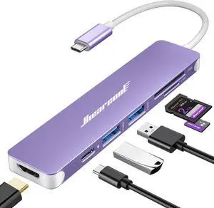 Hiearcool USB C Hub, 7-in-1 Multi-Port Adapter, USB-C to 4K HDMI Splitter Type C Dock Dongle with 100W Power Delivery SD/TF Card Reader Compatible for MacBook Pro/Air and More Type USBC Devices