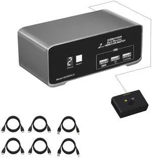 HDMI KVM Switch for 2 Computers 2 HDMI Monitors 4K@60Hz USB 2.0 with Remote