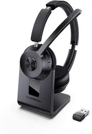 Wireless Headset with Mic for Work, Clear Sound Comfortable Stable Connection Computer Headset with Microphone, Bluetooth Headset with Charging Base & USB Dongle for Office Home Call Center(Black)