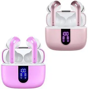 TAGRY 2 Sets X08 Pink and Sunset Pink Bluetooth Headphones True Wireless Earbuds 60H Playback Ear Buds with Wireless Charging Case in-Ear Earbuds with Mic