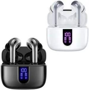 TAGRY 2 Sets X08 Black and White Bluetooth Headphones True Wireless Earbuds 60H Playback Ear Buds with Wireless Charging Case in-Ear Earbuds with Mic