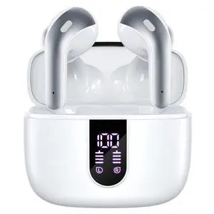 TAGRY Bluetooth Headphones True Wireless Earbuds 60H Playback LED Power Display Earphones with Wireless Charging Case IPX5 Waterproof in-Ear Ear buds with Mic for TV Smart Phone Laptop Computer Sports