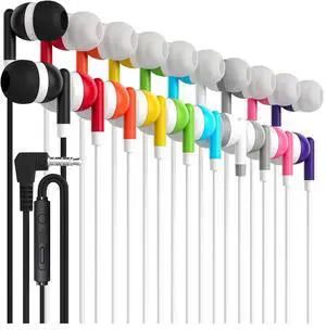 Maeline Bulk Earbuds with Microphone, Noise Isolating in-Ear Headphones, Volume Control Wired 3.5 mm Student Earbuds for Classroom, Library for iPhone, Android, MP3 Player - 50 Pack - Multi Color