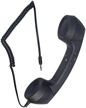 Retro Phone Handset, 3.5mm Jack Wire Cell Phone Receiver with Answer Button/Volume Keys, Handheld Old Telephone Headset for Mobile Phones/Cellphone/Smartphone (Black)