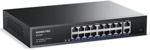 16 Port Gigabit PoE Switch,AUMOX PRO SG518P 18 Ethernet Unmanaged PoE with 2 Gigabit Uplink 250W,Plug and Play,Sturdy Metal Desktop, Wall Mount or Rackmount Network Switch, 802.3af/at Compliant
