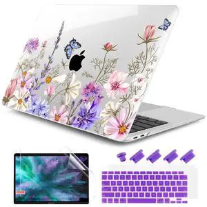 DONGKE Compatible with MacBook Air 13 inch Case 2021 2020 2019 2018 Release A2337 M1 A2179 A1932 with Retina Display & Touch ID, Plastic Hard Shell & Keyboard Cover - Butterfly Florals