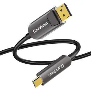 DavVision USB C to DP Fiber Optic Cable 50 FT, 4K@60Hz Type C to DP Active Optic Cable for Business Meeting, DP 1.2 with DP Alt Mode,HDCP 2.2,Compatible with iPhone 15/16 Pro/Max,MacBook,Galaxy S23/24