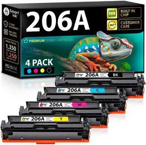 Smart Ink Compatible 206A Toner Replacement for HP 206A Toner Cartridges 4 Pack 206X with Chip to use with Color Laserjet Pro MFP M283fdw M283cdw Laserjet Pro M255dw M255nw (Black Cyan Magenta Yellow)