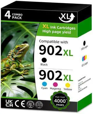 902xl Ink Cartridge Combo Pack OfficeJet 6978 6968 Compatible Replacement for HP 902 XL Black Color HP902 HP902XL HP902 6970 6958 6960 6966 6956 6950 6974 6963 Printer Cyan Magenta Yellow 4-Pack