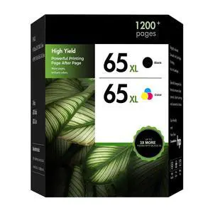 65 65XL Tri-Color / 65 XL Black Ink Cartridges Combo Pack Work Replacement for HP 65XL Printer Officejet Envy 5055 5000 5052 5058 DeskJet 3755 3772 3700 2655 3752 3720 3722 3723 3758 2652 2622 2-Pack
