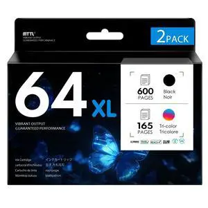 64XL Ink Cartridge (Black and Color 2-Pack) Replacement for HP 64 XL 64 Ink Cartridges Fits for Envy Photo 7858 7855 7155 7864 7158 6252 6255 Tango Printer Combo Pack