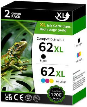 Repeka 62XL High Yield Ink Cartridge Replacement for HP62XL HP62 62 XL Combo Pack Compatible with HP OfficeJet 200 200c 250 250c 258 5740 5741 5742 5743 5744 (Black Tri-Color 2 Pack)