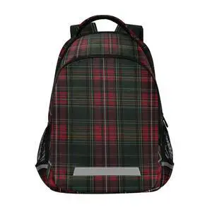 ALAZA Green and Red Tartan Plaid Backpack Purse for Women Men Personalized Laptop Notebook Tablet Bag Stylish Casual Daypack, 13 14 15.6 inch