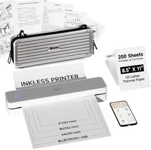 PRT Inkless Portable Printer for Travel, Wireless Thermal Printer for School/Office/Home Use, Supports 8.5 x 11 Inch Thermal Paper, Includes Carry Case and 200 Sheets Thermal Paper