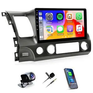 4G+64G Car Stereo for Honda Civic 2006 2007 2008 2009 2010 2011 with Wireless Carplay Android Auto,10" Touchscreen Android 14 Car Radio Support Bluetooth WiFi GPS Mirror Link AHD Backup Camera Mic
