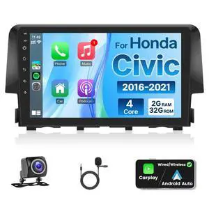 Car Stereo for Honda Civic 2016 2017 2018 2019 2020 2021, 9inch Touch Screen Android Head Unit Radio, Wireless CarPlay Android Auto Backup Camera (Model A: Without J.B.L)