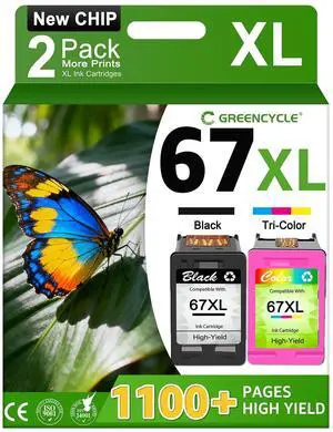 67XL Ink Cartridges Black/Color Combo Pack for HP Printer Compatible for HP Ink 67 High Yield for HP67XL Work for DeskJet 2755e 2800e 2855e 4255e 4155e 2700 Envy 6055e 6400 6455 6485 6000 (2 Pack)