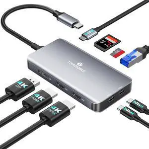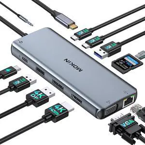 Lemorele 13 in 1 USB C Docking Station Triple Monitor w/Dual HDMI 4K, VGA, 5 USB 3.0/2.0, USB-C 3.0, 100W PD, SD/TF, 3.5mm Audio, Multiport Hub Adapter for Lenovo, Surface, Dell, HP Laptops