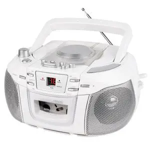 HANNLOMAX HX-338CD CD Boombox, AM/FM Radio, Cassette Recorder, Records from CD or Radio, Headphone Jack, LED Display, AC/DC Dual Power Source. (White)