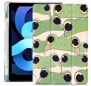 MAYCARI Cartoon Cute Animals Case for iPad 10.9 inch 2022 with Pencil Holder, Original Pattern iPad 10th Generation Soft TPU Back Protective Cover Shell, Auto Sleep/Wake Slim Shell - Cute Frogs