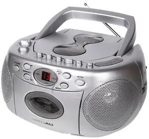 HANNLOMAX HX-323CD Portable CD Player, AM/FM Radio, Cassette Recorder, Records from CD or Radio, Headphone Jack, AC/DC Dual Power Source. (Silver)