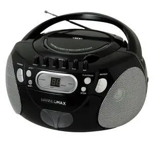 HANNLOMAX HX-337CD Portable CD Player, AM/FM Radio, Cassette Recorder, Records from CD or Radio, Headphone Jack, AC/DC Dual Power Source. (Black)