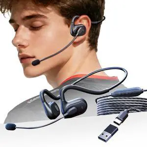 Open Ear Bluetooth Headphones with Microphone, Noise Cancelling Wireless Headset with Mute Button, Supports aptX/aptX-LL/aptX-HD, Designed for Meeting, Home Office,Driving -Not Bone Conduction (Black)